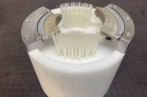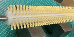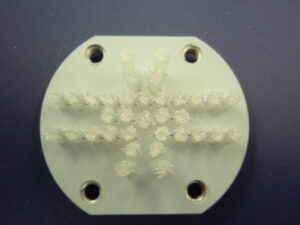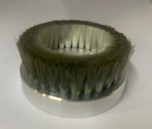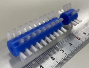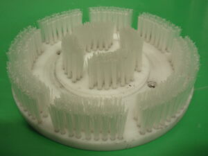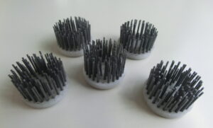 植込ロールブラシ(極小) Φ8のMCナイロン台に、Φ0.16の植毛加工を行っております。植込ブラシであれば、狙った清掃箇所に対して、当てることができます。 |