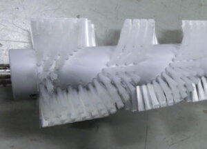 植込ロールブラシ(スパイラル植) PCV植毛台に、螺旋状に植毛 流れ方向を作り、清掃物を一定方向に、払い出す事が可能です。 |