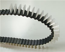 タイミングベルトブラシ 市販のタイミングベルトにブラシの毛を植毛致します。厚みが無いと植毛できない可能性がございますので、お問い合わせください。 |