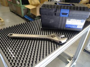 テーブルブラシ(タレパンブラシ) キズを嫌う製品をブラシの弾力でキズを付けず搬送、作業出来ます。 |