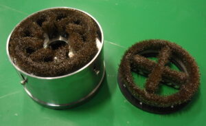 植込ロールブラシ(ダブルスパイラル植) 内から外へコンタミのコントロールが出来ます。画像は耐熱仕様品になります。 |
