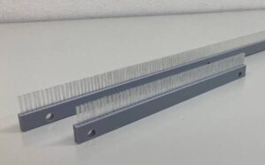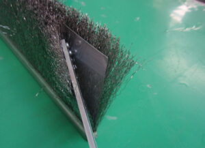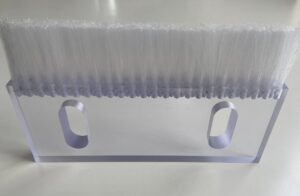 搬送口カバーブラシ 装置の搬送口の隙間に合せてブラシを製作します。 |