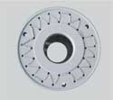 | 円盤上のブラシを回転させた場合、毛材の配列方法により洗浄・清掃できない部位が発生します。イラストのようにブラシ毛材が当たらない部位がある為、汚れも落ちにくく、ブラッシング作業の時間もかかってしまいます。 |