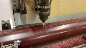 | 植込台になる板や軸部を自動穴あけ機で 穴を開けます。 |