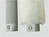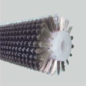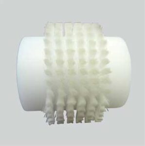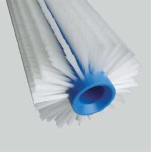 | 「千鳥崩し植」は毛材の隙間が重なり合うことにより、長手方向にブラシ毛材の隙間が無いため洗浄ムラができません。 | ブラッシング清掃のチリや埃の洗浄清掃物を、ロールブラシの両外側に払い出す効果がございます。 (ブラシの回転方向打合せ必要です) |