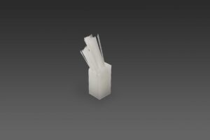 ポリエチレン(PE)より、密度を高める事により高い耐衝撃性を備え、耐摩耗性においてもPOMなどより優れています。植込み台としては食品衛生関連のブラシによく使用されます。![]() |