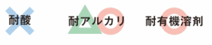 衝撃強さに優れ吸水による寸法変化が少ないです。 酸類および酸化作用の強い薬品を除き、それ以外の無機薬品や油類には抜群の耐久性を発揮します。 ![]() |