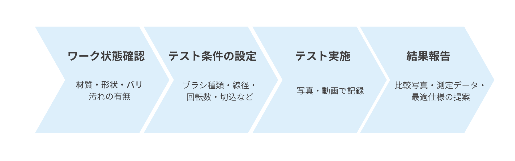 材質や加工条件に応じて、テスト内容は柔軟にカスタマイズ可能。