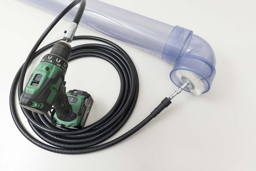 今まで手作業で行っていた清掃作業を電動ドライバー等に取り付け時間短縮、強固に配管内部などを清掃する事ができます。