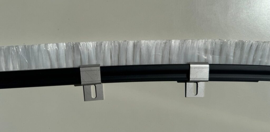 ブラシ毛材の間にPPシートを挟み虫・風・水・ゴミなどの侵入を防ぎます。
