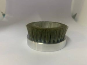 軸を機械に取り付けれる様にしています。コシのあるエレバイ毛材を使用し、除電と清掃を同時に行えます。