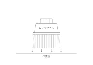 ブラッシング作業者は保護用防具を着用して、毛材等が周囲に飛び散らないように保護してください。
