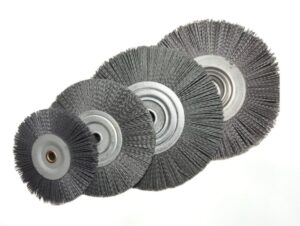 金属や樹脂・木材などの表面仕上げやバリ取りに砥粒入りブラシを使用します。