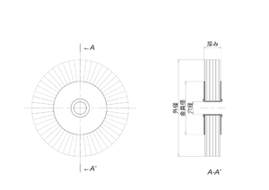 商品名 外径D 穴径 金具径 TX-050 50 10 25 TX-075 75 38 TX-100 100 50 TX-103 13 TX-156 150 16 75 TX-205 200 25 90 毛材:砥粒粒度の一例 120Sic 180Ao 180Sic 240Ao 240Sic 320Ao 毛材種類 打ち合わせ 320Sic 500Ao -