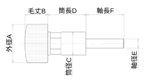 コード 商品名 毛材 外径A 毛丈B 筒径C 筒長D 軸径E 軸長F 線径 572020 傘型